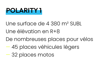 Polarity répond à une forte exigence environnementale grâce à son architecture à faible impact et à son insertion au cœur d’un îlot verdoyant.